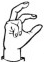 На ћирилици написано ЛАБУД ЗДЈЕЛАР састоји се из 12 слова [?]. Исписано ћириличном једноручном азбуком за глувонеме: